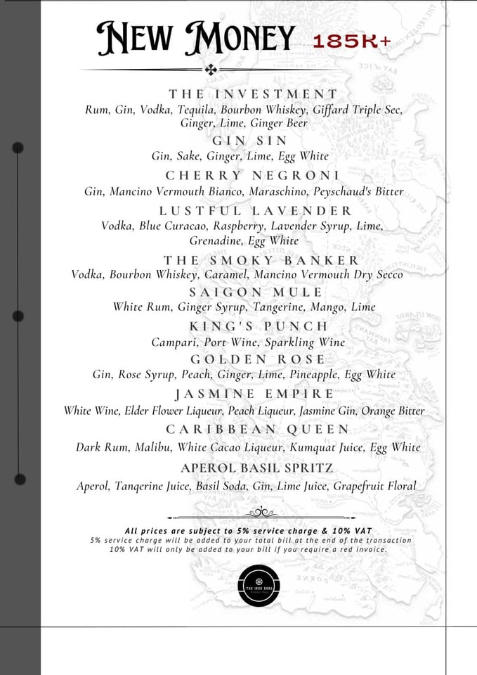 Từ 17h đến 20h tất cả các ngày trong tuần. The Iron Bank giảm giá 30% cho các loại cocktail Old Money trong menu.