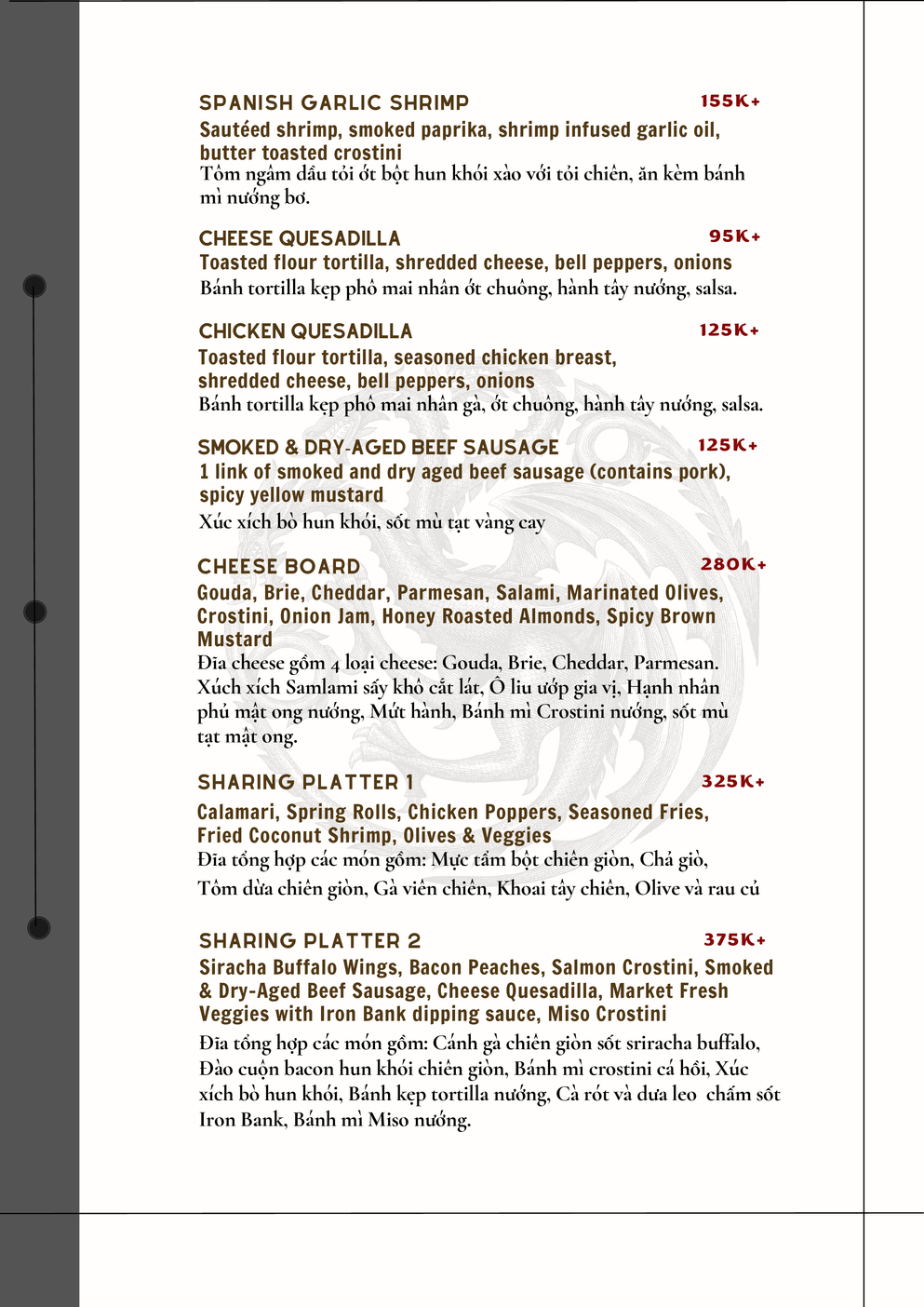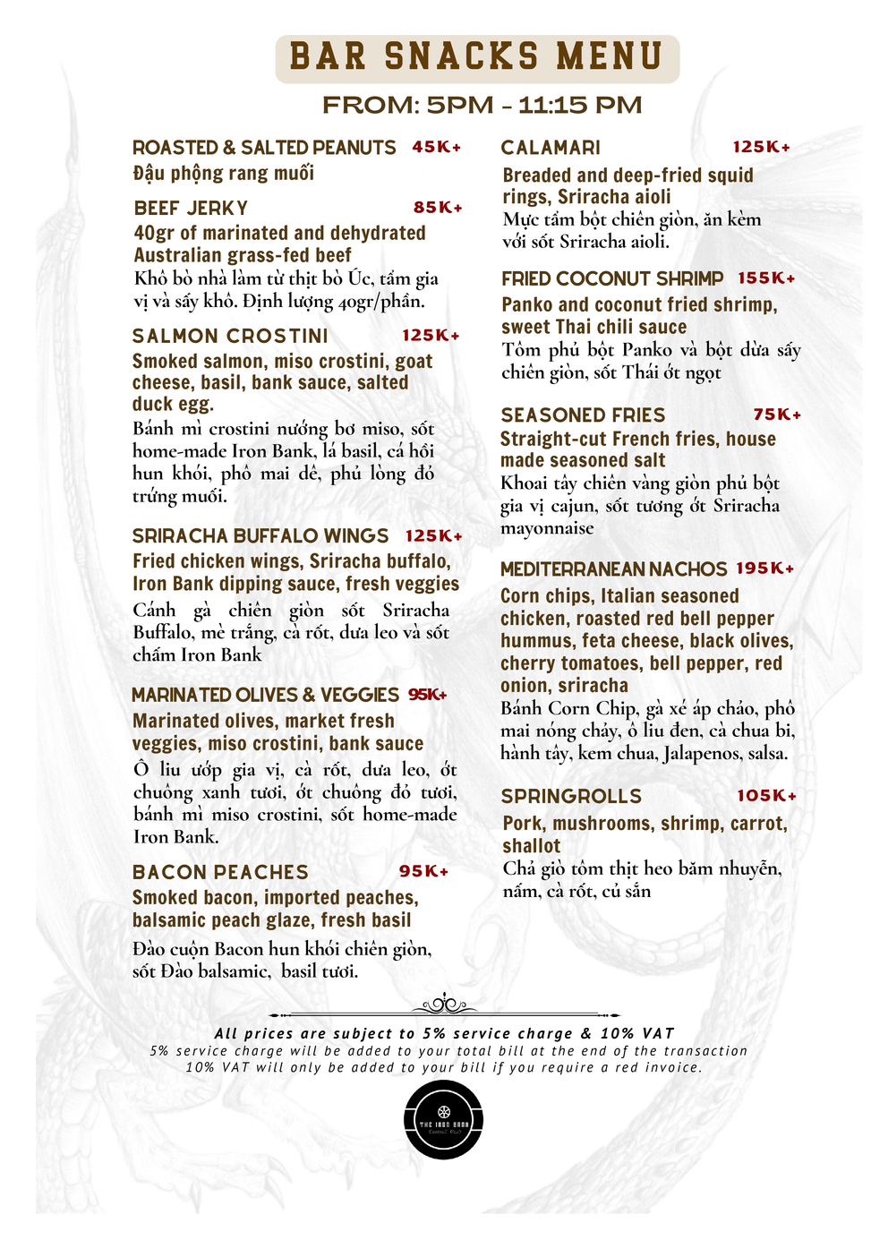 Bar Snack Menu
