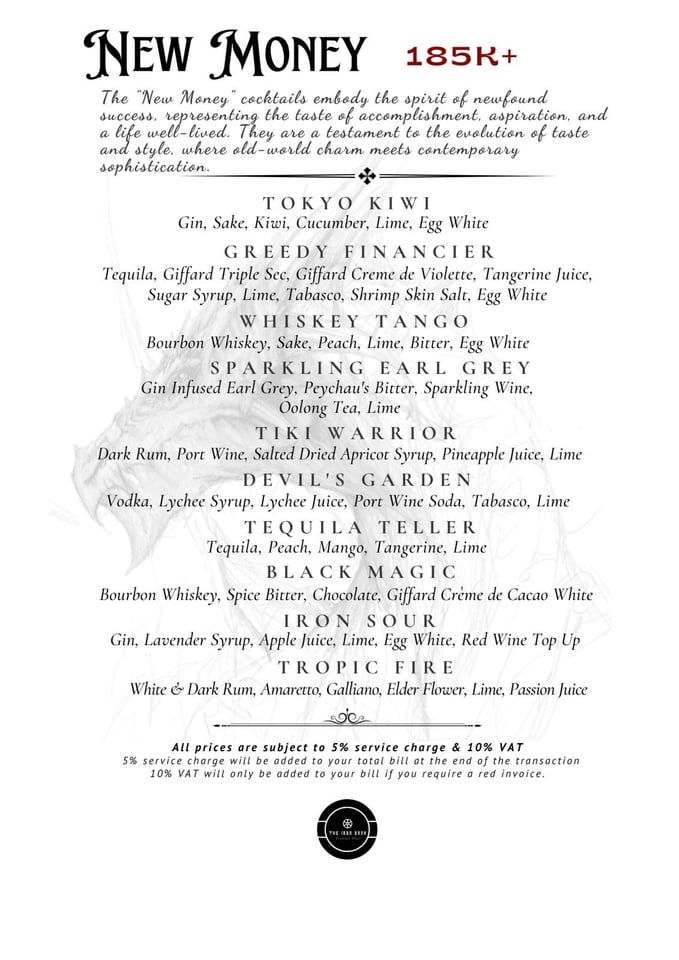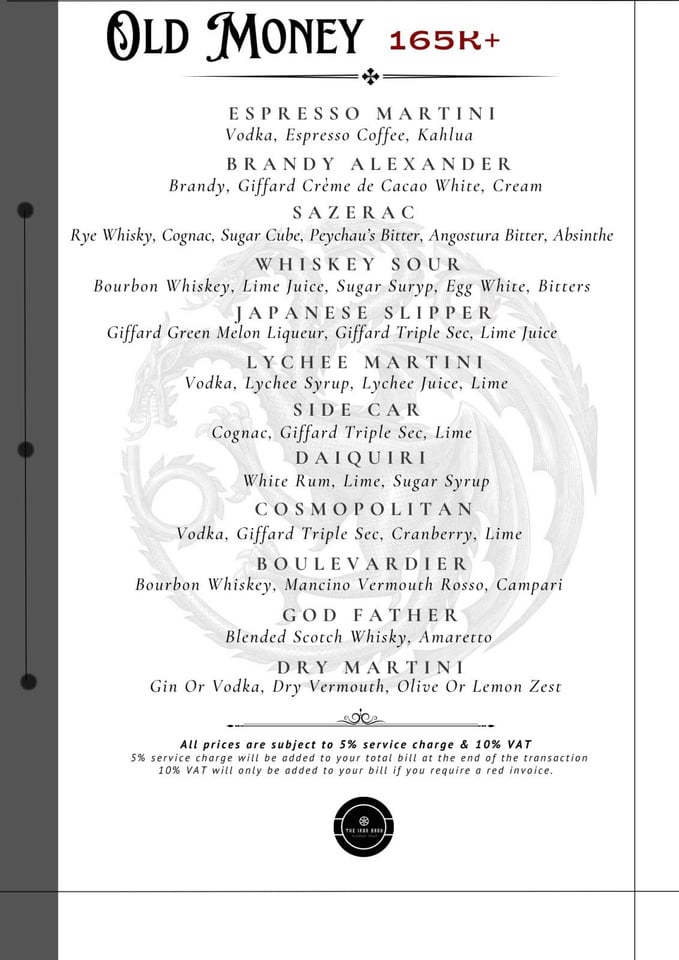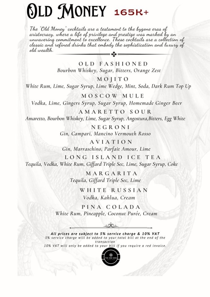 Old Money cocktails from the menu.